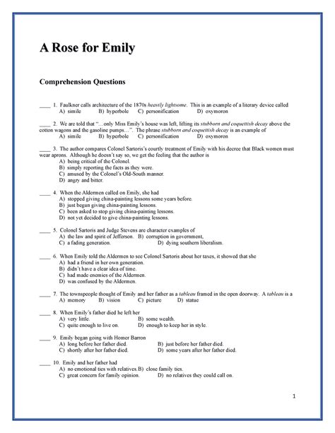 Read Rose For Emily Selection Test Answers Epub